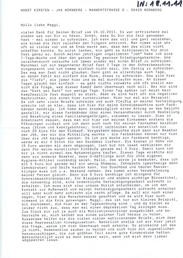 Schreiben Kirsten v. 18.11.2011