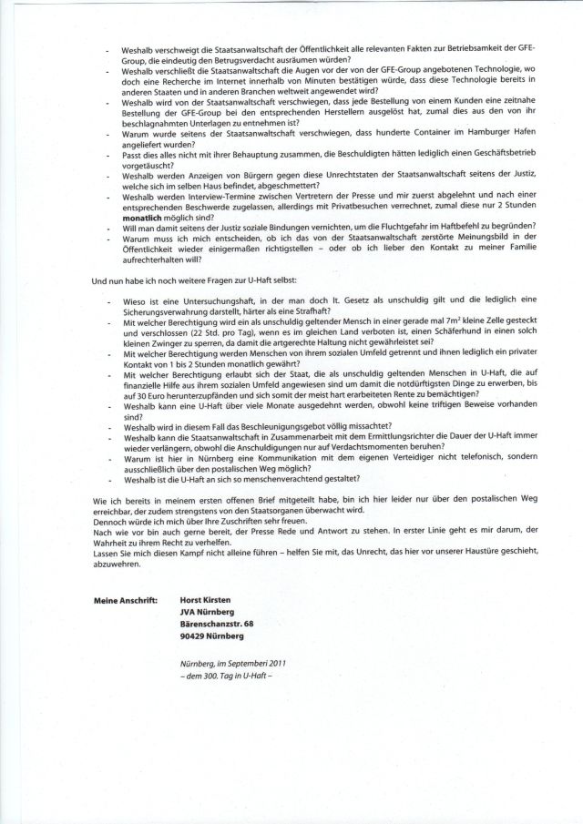 Den 1. ten Offenen Brief von Horst Kirsten finden Sie auf http://www.gfe-skandal.de
